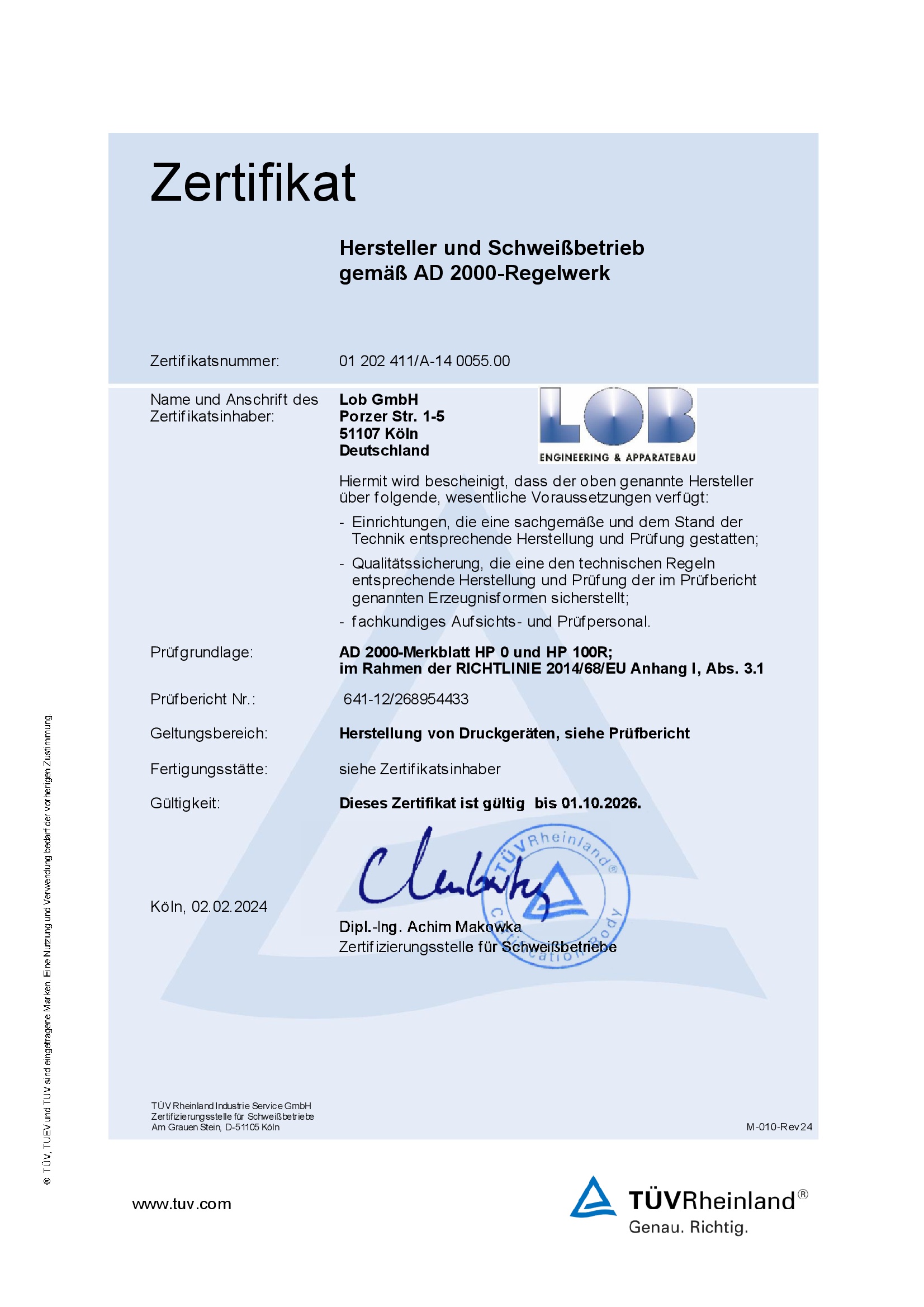 HP0 Zertifikat LOB GmbH
